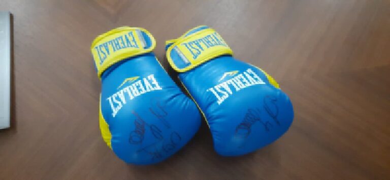 Lisaks Ukraina poksiässa kinnastele on oksjonil tema autogrammiga raamitud särk, millele on samuti allkirja andnud ukrainlasega koos treeninud ameerika poksikuulsus Evander Holyfield.