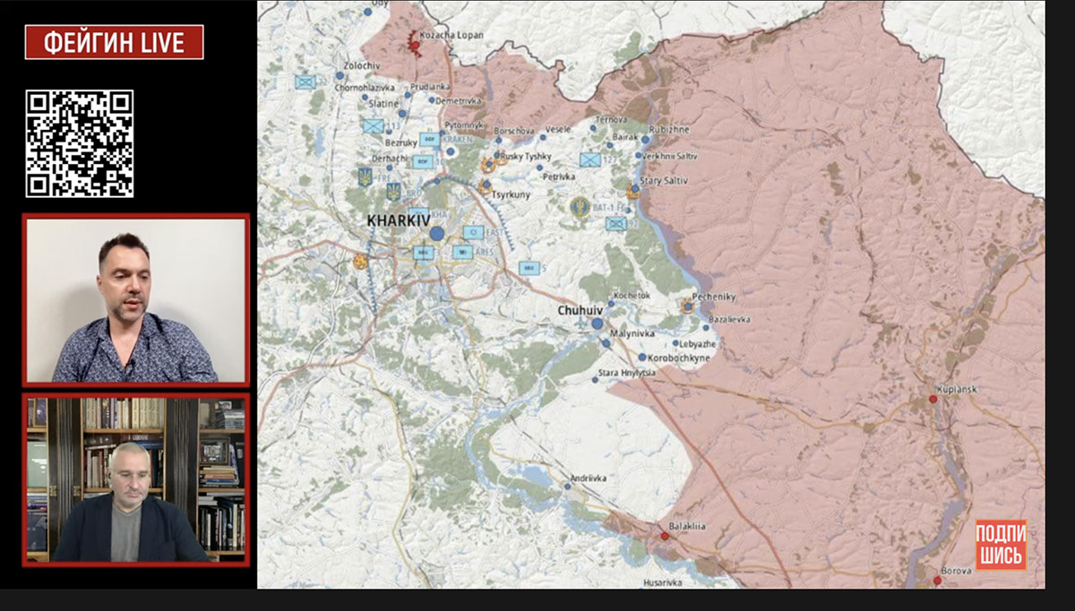 Praeguse olukorra kohta rindel ütles Arestovõtš, et Venemaa tungib peale Harkivi suunal. Harkivit pommitatakse päris tugevalt, seda on tunda kesklinnas. Venemaa tungib seal peale, et mitte anda Ukrainale võimalust Donbassis vasturünnakut korraldada.