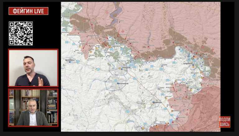 Arestovõtš ütles, et venelasi hukkub tänu Lääne relvadele. „Saatke veel relvi ja hukkunuid on veel rohkem,” ütles Arestovõtš naerul näoga.