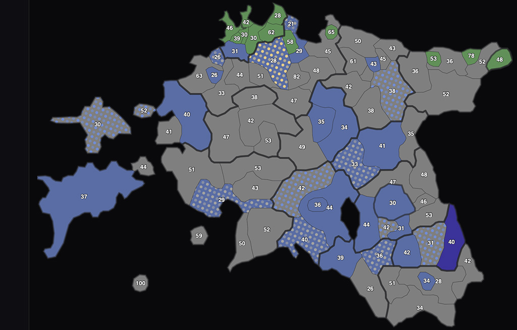 Üle Eesti juhib Isamaa, välja arvatud Tallinn ja Ida-Viru