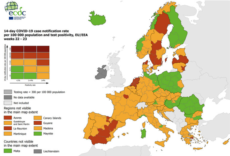 Olukord Euroopas paraneb, selgub ECDC indikatiivselt koroonakaardilt. Rohelisi laike on juba palju rohkem kui Island ja Soome. Punasemad laigud on Lätis, Rootsis, Taanis, Belgias, Hollandis ja Hispaanias.