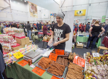 Müügil oli erinevat liha, kala, aiasaadusi, veine, siidreid, mahlu, moose, kastmeid, siirupeid, leiva- ja saia tooteid, küpsetisi, juustu ja vorsti.