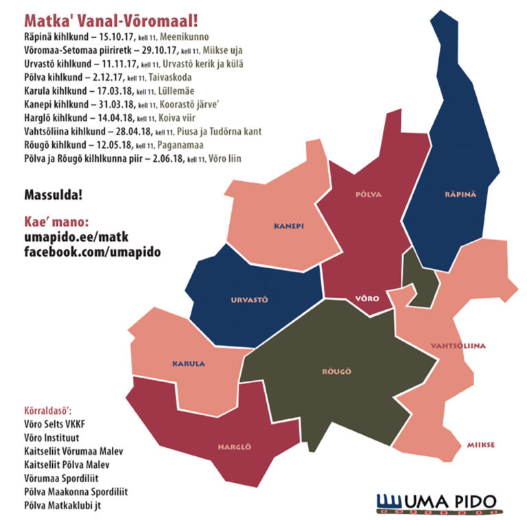 Avaldatud: 9 oktoober, 2017Järjekorras juba viies võrokeelne Uma Pido 2. juunil 2018 viib kõiki soovijaid peolainele matkasarjaga, mille käigus külastatakse Vana-Võromaa kõiki kaheksat kihelkonda ning Setomaad. Avatud on ka kooride registreerumine peole.