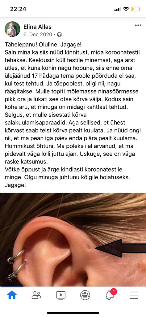 Võtke õppust ja ärge kindlasti koroonatestile minge. Olgu minuga juhtunu kõigile hoiatuseks. Jagage.