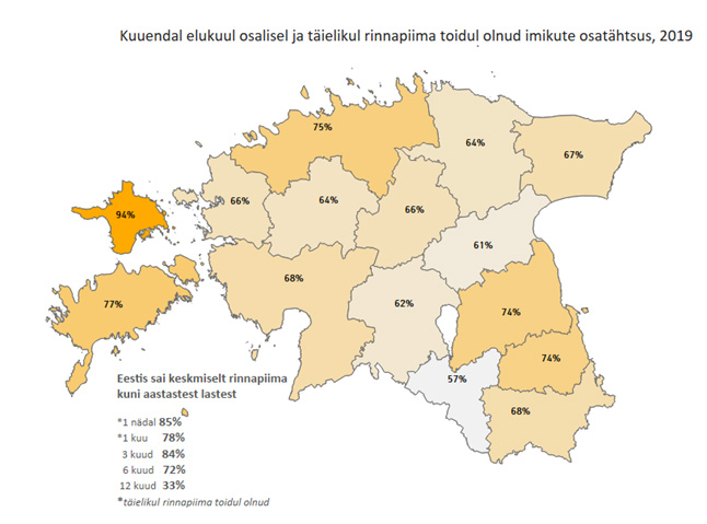 Eelmisel, 2019. aastal sai kuni ühe aasta vanustest lastest kuuekuuselt täielikult ja osaliselt rinnapiima 72 protsenti ning aasta vanuselt 33 protsenti lastest. Mõlemad näitajad on aga viie aasta jooksul kasvanud, vastavalt 10 ja 14 protsendipunkti.