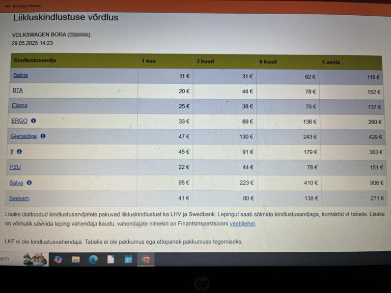 Avaldatud: 29 mai, 2025Liikluskindlustuse hind võib erineda kordades. Võrdle seltside pakkumist Liikluskindlustuse fondi veebis lkf.ee.