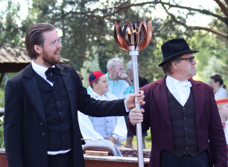 Otepää kultuurikeskuse juhataja Jorma Riivaldi sõnul oli krahv Berg oma aja visionäär. „Legendi järgi on isegi esimene külmkapp ja külmvagunid, millega Venemaale kaupa veeti, just krahv Bergi leiutatud,” rääkis Riivald. Ta lisas, et krahv oli lausa nii jõukas mees, et oli lausa Eesti esimese auto omanik. Koos krahviga tervitasid tuld kohalikud rahvatantsijad. Lisaks jagas Sangaste kultuurimaja perenaine Raili Mandli iseküpsetatud Sangaste rukkileiva palu.