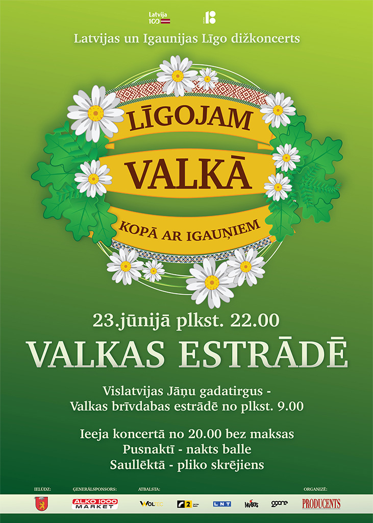 Ürituse korraldab SIA “PRODUCENTS” koostöös Valka linnavalitsusega. Ürituse suursponsor on Alko 1000. Toetavad SIA Woltec, Läti Raadio 2, LNT, SIA McĀbols, SIA 29one ja Mego SIA.