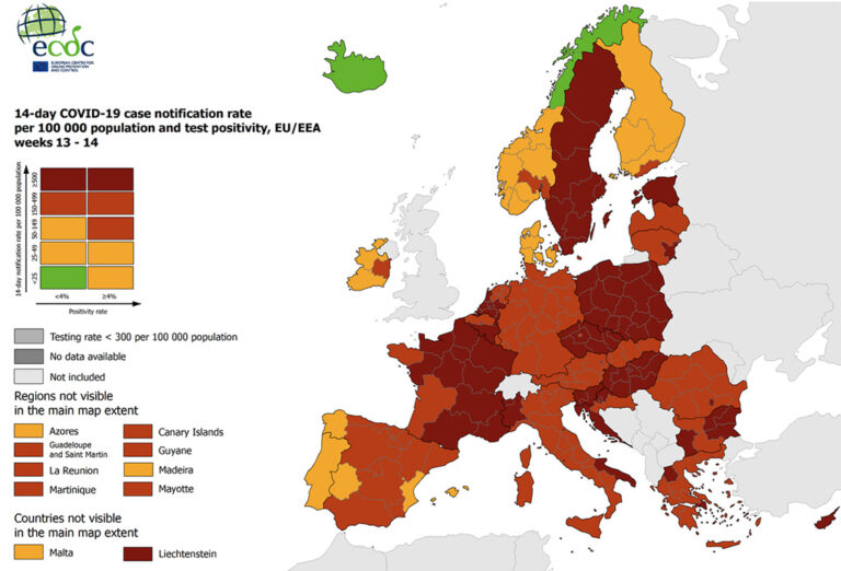 Avaldatud: 15 aprill, 2021Vaatamata sellele, et Eestis on kehtinud juba kuu aega karmid piirangud, püsib koroonaga nakatumiste arv jätkuvalt kõrge, selgub Euroopa haiguste kontrollikeskuse ECDC värskest ülevaatest.
