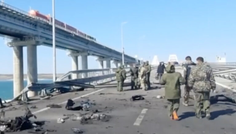 Avaldatud: 8 oktoober, 2022Vene võimud avaldasid video purustuste kohta Krimmi sillal. Nagu näha, on üks sõidusuund jäänud maanteesillal terveks. Samuti on terve raudteesild.