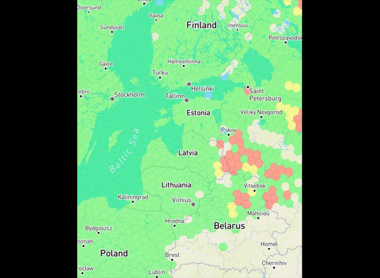 Juuresolevalt GPS häirete kaardilt on näha, kuidas signaali segatakse põhiliselt Lõuna-Eestis, Läti idaosas ning Leedu ida- ja lõunaosas.