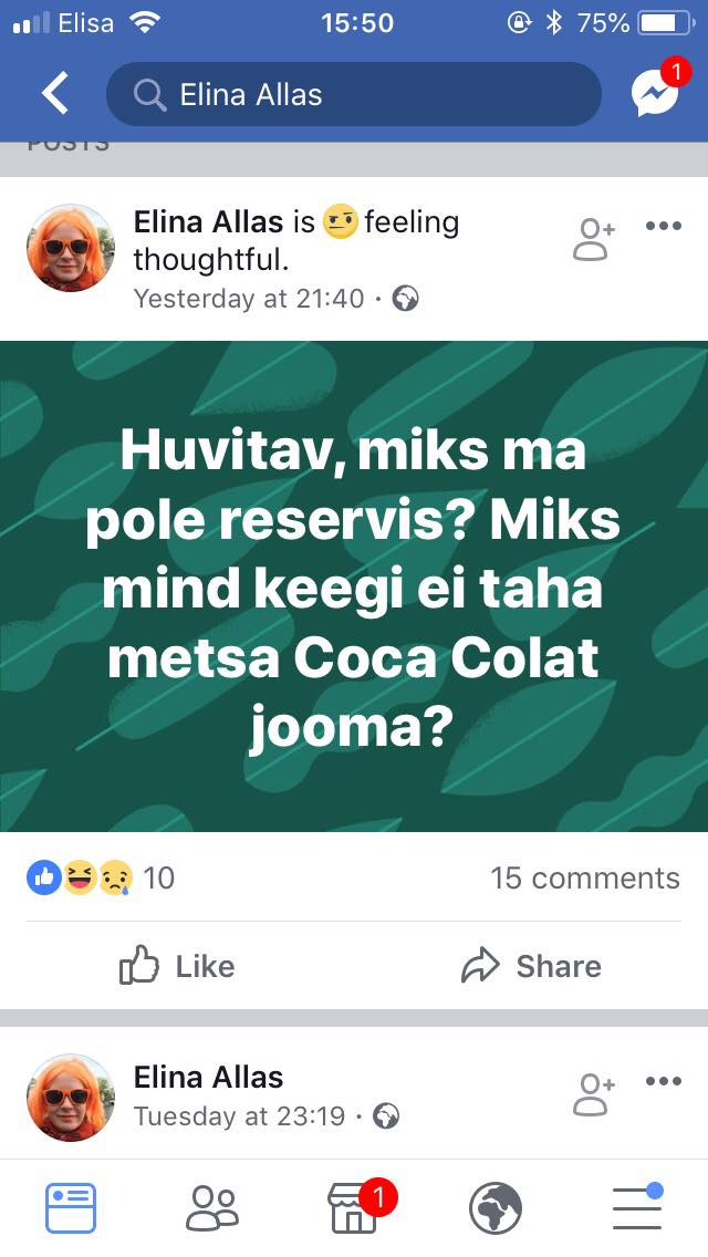 „Huvitav, miks ma pole reservis? Miks mind keegi ei taha metsa Coca-Colat jooma?” kirjutas Elina Allas sotsiaalmeedias, andes mõista, et Eesti taasiseseisvumise järgse ajaloo suurimal sõjalisel õppusel tegeletakse vaid Coca-Cola joomisega.