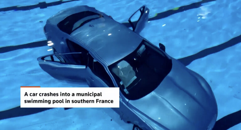 A car, with a woman and young child inside, crashed through the glass wall of a municipal pool in the French town of La Ciotat, landing in the main basin where several swimmers were present pic.twitter.com/jKX6bb7lNQ