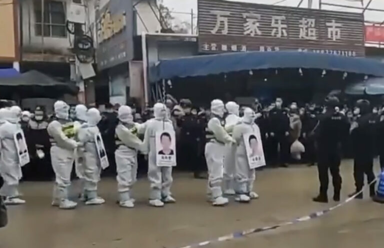 Hiinas Guangxi piirkonnas Jingxi linnas üles võetud videos on näha, kuidas märulipolitsei talutab läbi linna nelja kaitseülikondades kahtlusalust, kes kannavad oma näopilte ja nimesilte.