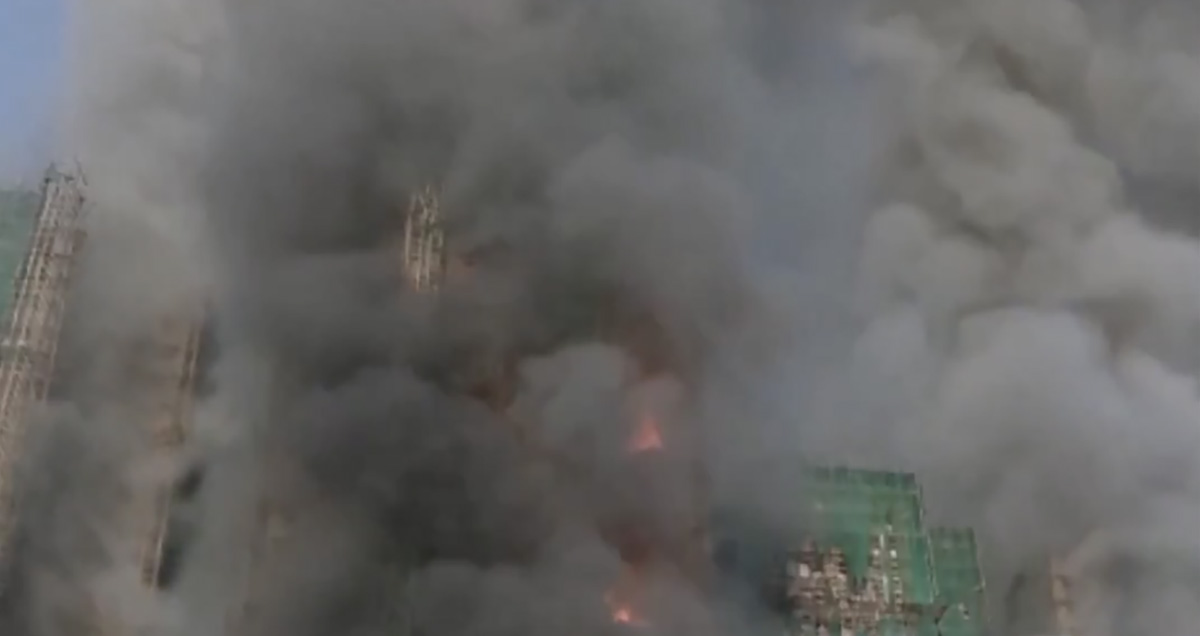 #SCENE A #fire engulfed a residential building in #HongKong‘s northern #TaiPo district on Wednesday, with plumes of thick grey smoke billowing out as emergency services battled to subdue the blaze.#香港 #大埔 火灾 pic.twitter.com/QyiGmaDmMA
