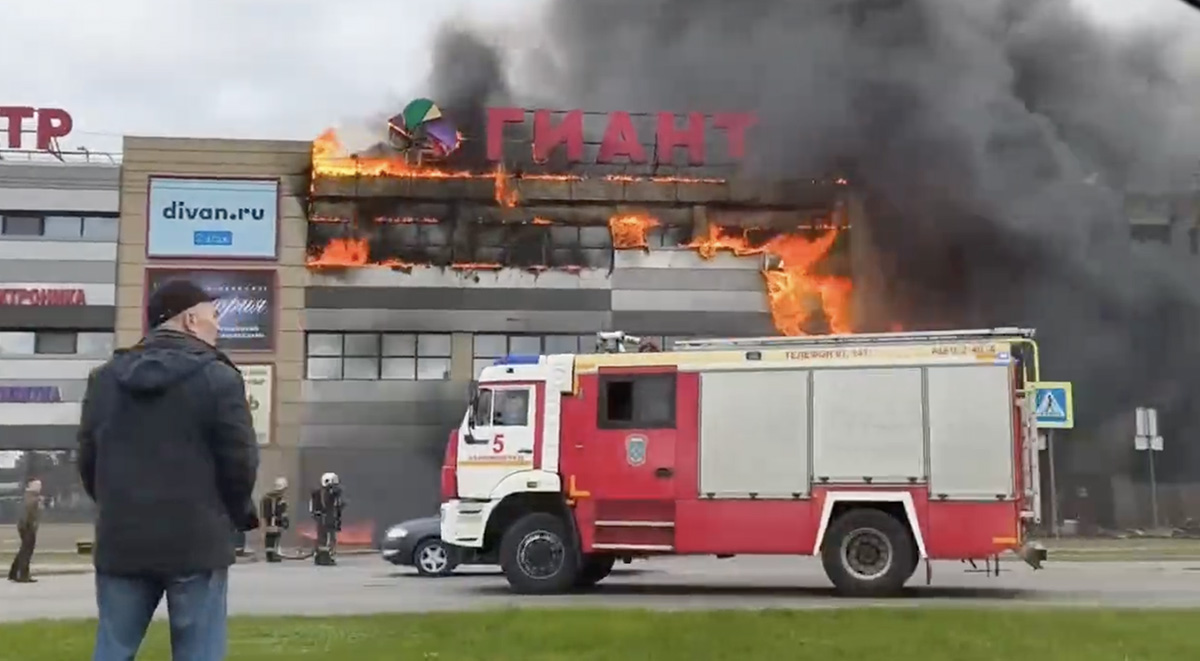 A large blaze broke out Sunday at the Giant shopping center on Moskovsky Prospekt in Kaliningrad, an exclave of western Russia.