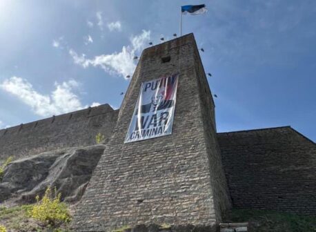 Avaldatud: 9 mai, 2023Lõunaeestlane jälgib olukorda Narvas. Seal pandi Vene piiri ääres välja plakat ingliskeelse kirjaga „Putin sõjakurjategija”.
