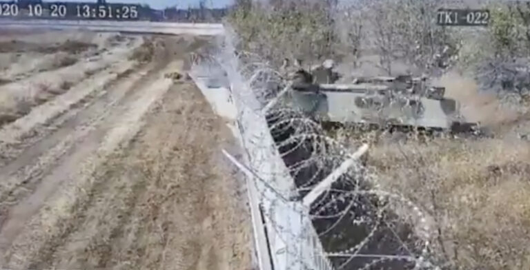 VIDEO: Purjus vene sõjaväelased sõitsid soomukiga lennujaama aia maha