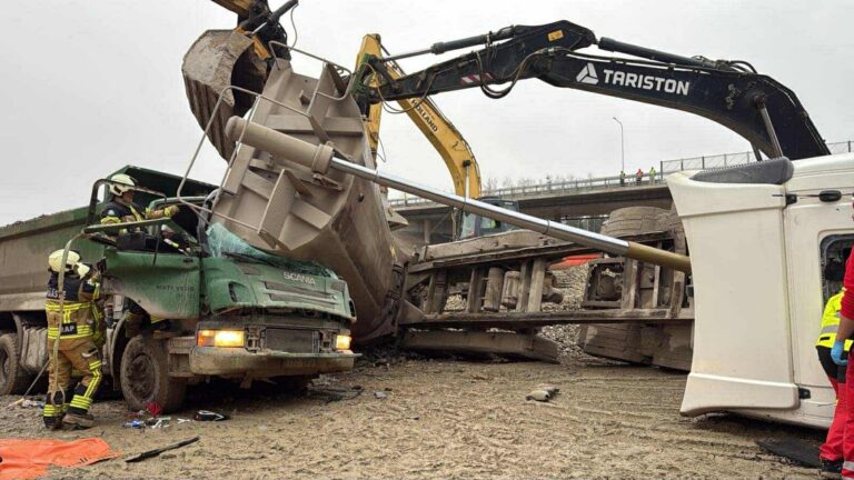 Täna hommikul kell 9.35 said päästjad väljakutse Rapla valda Väljataguse külla, kus Rail Baltica ehitusplatsil oli juhtunud õnnetus kahe veoautoga. Päästeameti teatel vajus üks veoauto koormat maha laadides ebastabiilse aluspinna tõttu kaldu, mille järel kukkus ülestõstetud kast peale madalamal seisnud veoki kabiinile.