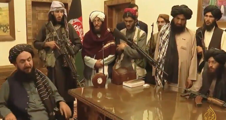 Avaldatud: 15 august, 2021Sotsiaalmeediasse on pandud videod sellest, kuidas Talibani võitlejad on kogunenud Afganistani presidendipaleesse.