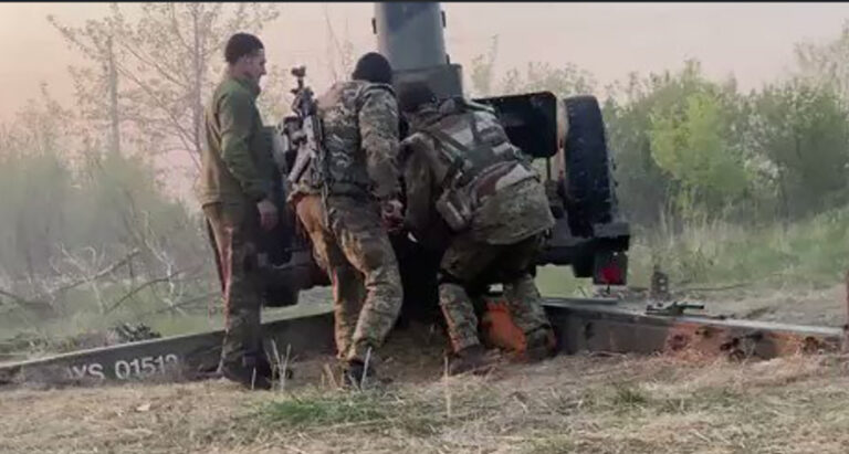 Videos on kasutusel Eestist saadetud 122 mm haubitsad D-30A. Kokku on alates märtsist Eestist saadetud abi korras vähemalt 9 sellist haubitsat.