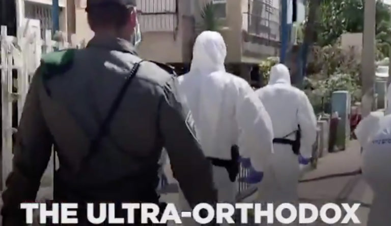 Iisraeli valitsuse otsusega suleti linn 2. aprillil. Videos on näha, kuidas politseinikud sisenesid linna kaitseülikondades, et kehtestada nõuet hoida teistega piisavat vahemaad.