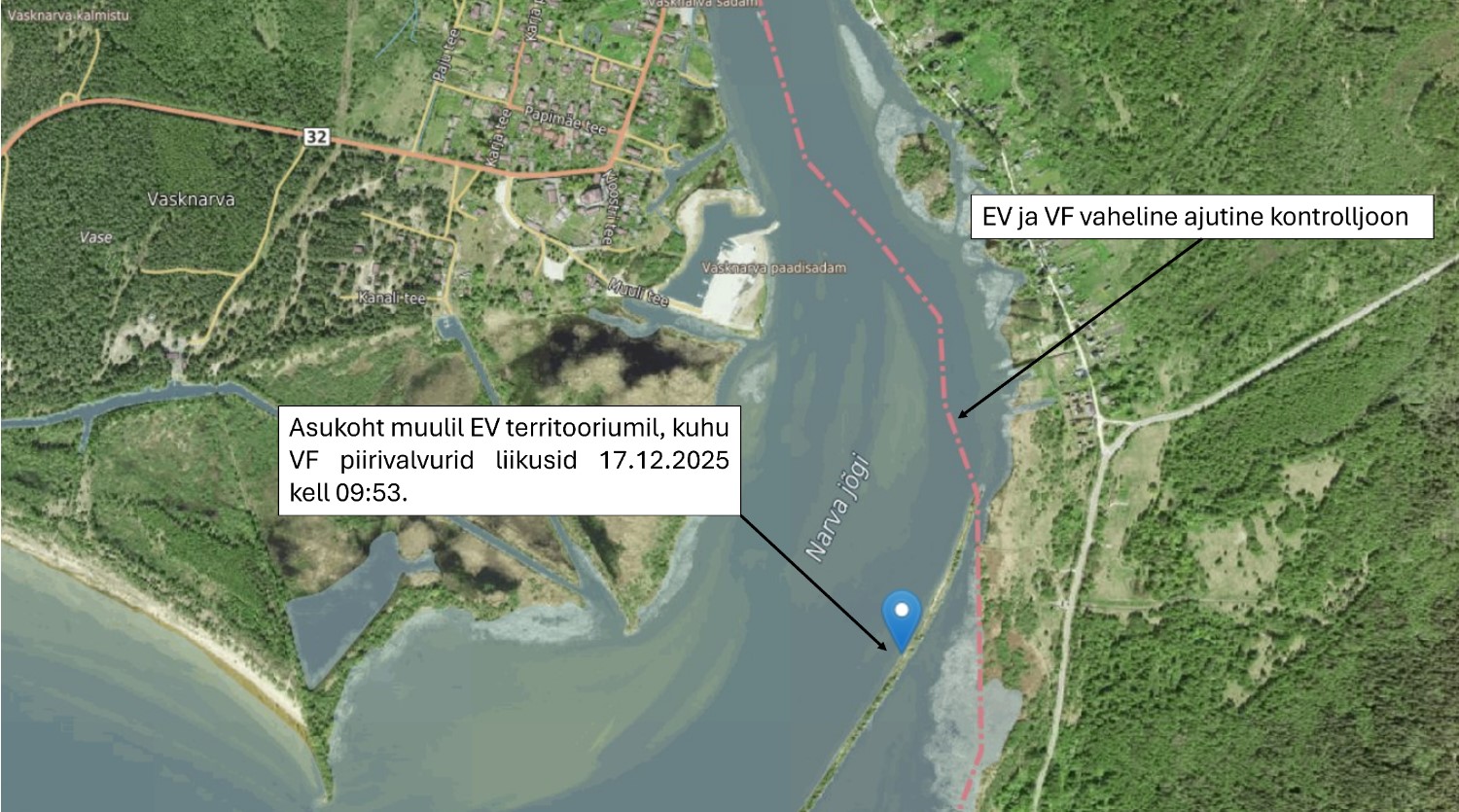 Täna, 17. detsembril enne kella 10 hommikul tuvastasid Ida prefektuuri piirivalvurid seirekaameraga Venemaa piirivalvurite liikumise hõljukiga Narva jõel Vasknarva muulil. Hõljuk peatus muuli juures ning sellest väljus kolm piirivalvurit, kes liikusid jalgsi mööda muuli. Selle käigus ületasid Vene Föderatsiooni piirivalvurid kontrolljoont suunaga Venemaalt Eestisse ning tagasi muuli Venemaa poolsesse kaldasse. Pärast seda naasid piirivalvurid oma hõljuki juurde ning liikusid sellega Venemaa poolsesse kaldasse.