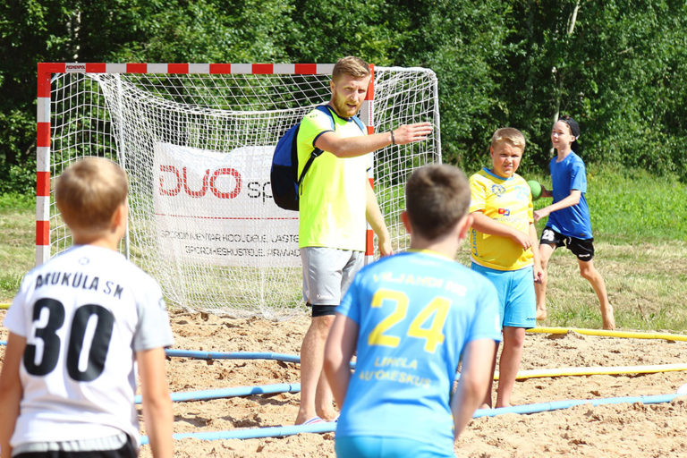 Viljandi noored kuulasid Alatskivi rannakäsipallietapil Saksamaal mängiva Eesti koondise väravavahi Rasmus Otsa õpetussõnu. Foto: Helin Potter Laupäeval lõpevad Viljandis Eesti meistrivõistlused rannakäsipallis. Kolmas ja viimane etapp algab Viljandi järve rannaalal kell 10 ning püstitab järjekordse osavõturekordi, sest osalema on oodata koguni 65 võistkonda. Põnevust jagub mitmesse vanuseklassi, ehkki kaheksast sarjast neljas on meistrivõistluste liider võitnud kaks esimest etappi.
