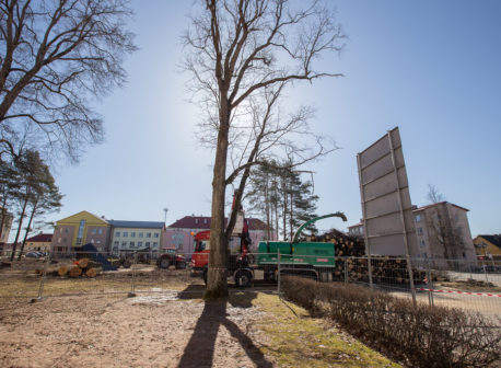 Võru kesklinna väljaku puudest tehti täna haket (lisatud galerii)