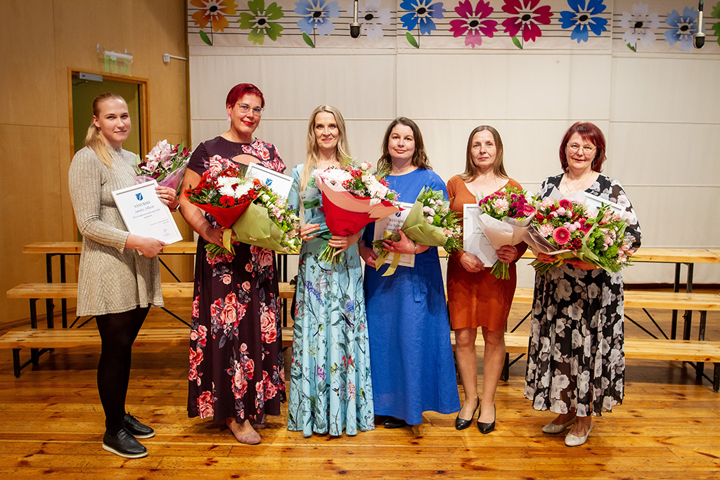 Pildil (vasakult) Sandra Sillaste, Eve Breidaks, aasta ema Mirja Randvere, Triin Rõõmusoks, Piret Raudsepp, Piret Kahre. Pildilt puudub Karin Peterson – tema täitis vanaema kohust. Foto: Tiina Männe