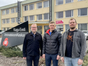 RenoWave projektijuhid Jaanus Mark (vasakul) ja Siim Meeliste (paremal) ning Võrumaa Arenduskeskuse juhatuse liige Tiit Toots (keskel). Foto: Lota Vana