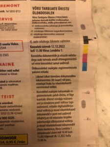 Võru TÜ kuulutus