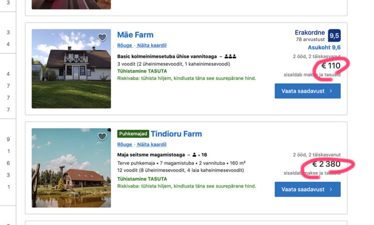 Samas pakutakse Rõuges 2 inimesele 2 ööks majutust ka 2380 euro eest (Tindioru farm), aga seda ei pea ostma.